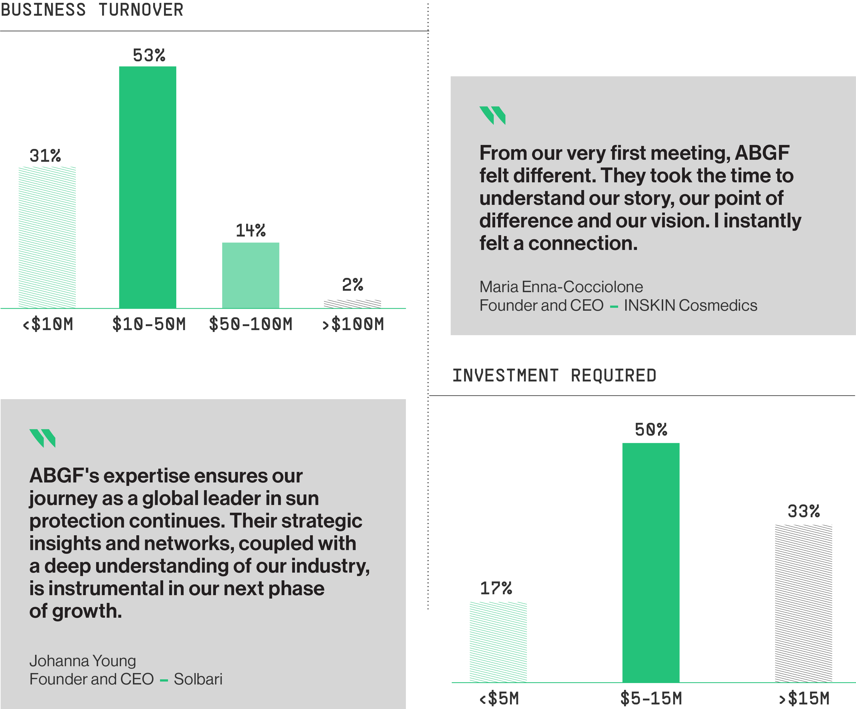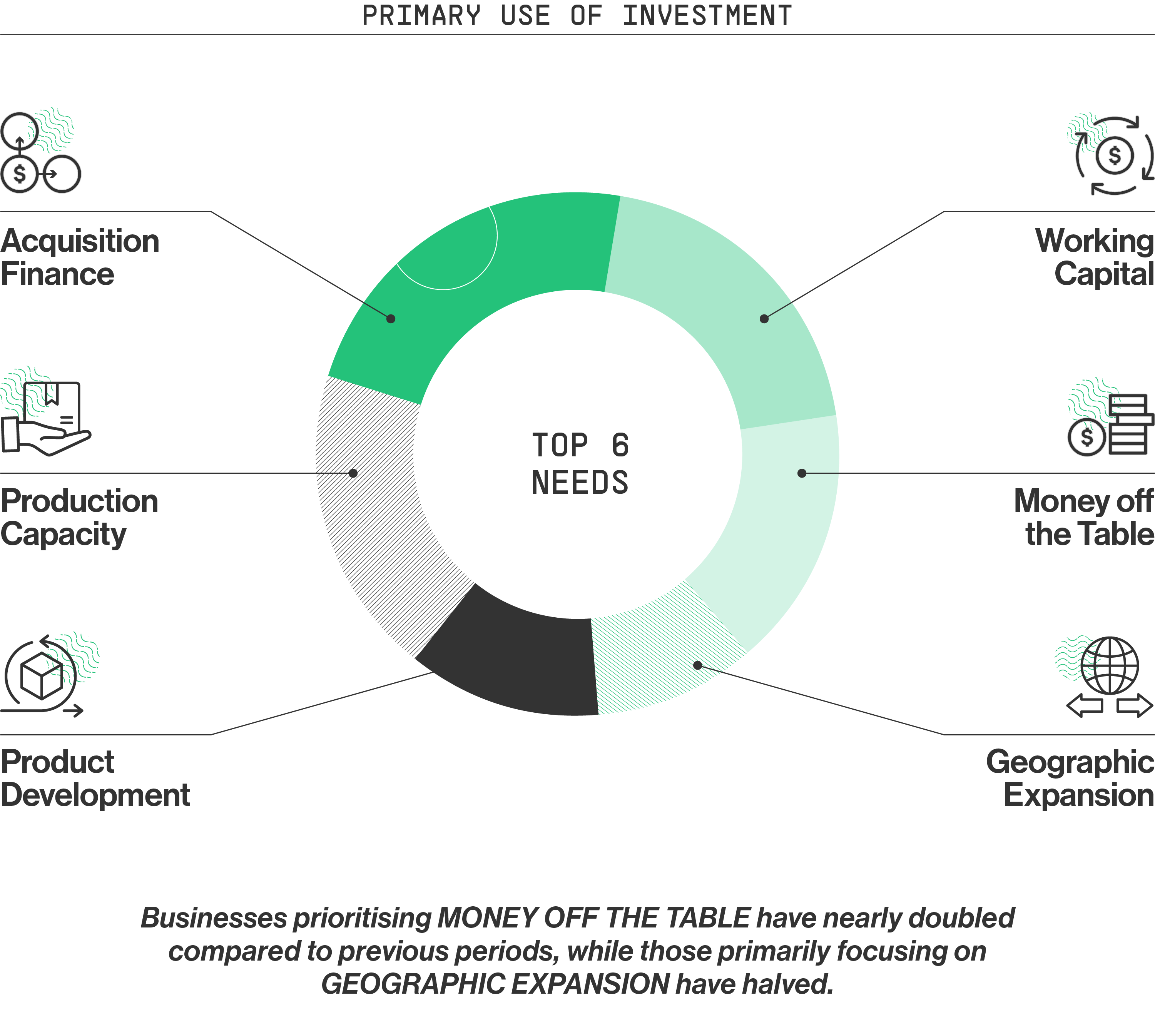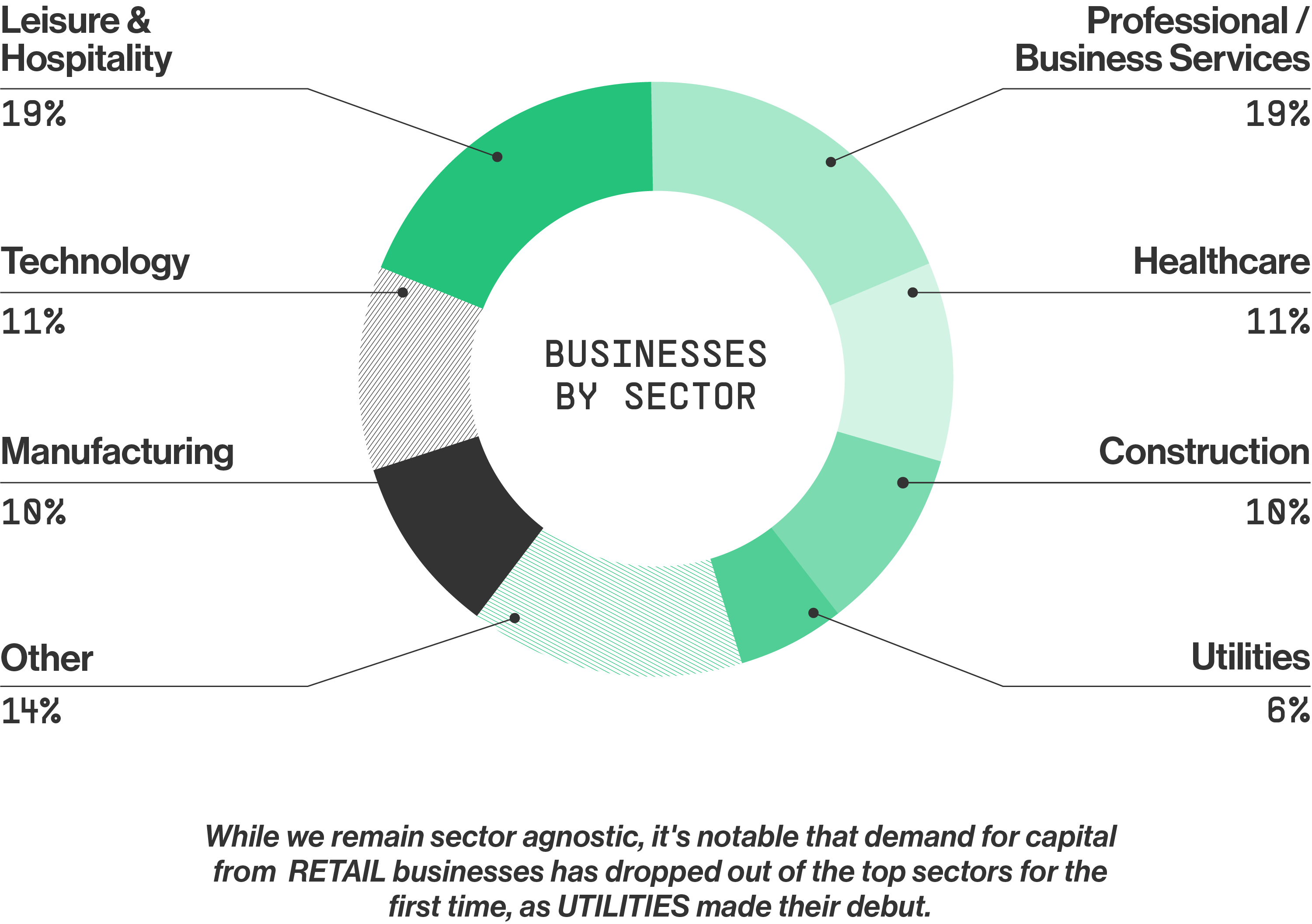 Based on these macroeconomic undercurrents, we saw a couple of notable changes in the demand for growth capital. First, demand from retail businesses for investment declined sharply, while demand surged from businesses in the utilities, healthcare, and professional/business services sectors – a reflection of the uneven impact the economic environment is having on different sectors. Second, a material change emerged with more founders wanting to take money off the table through a partial sell-down of shares to a minority investor. This approach allows founders to secure immediate financial benefit while maintaining the potential for significant financial gains in the future success of the business.