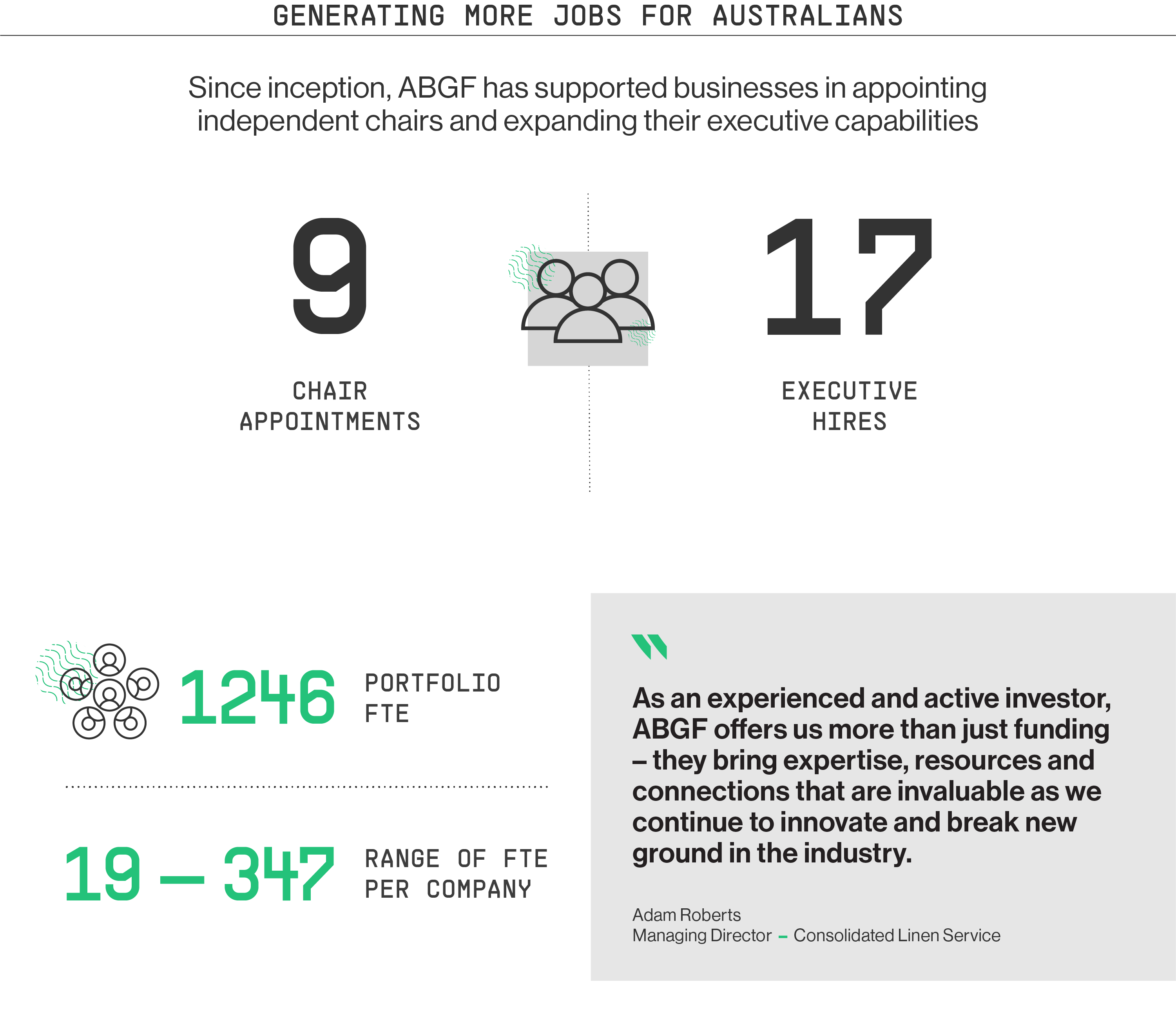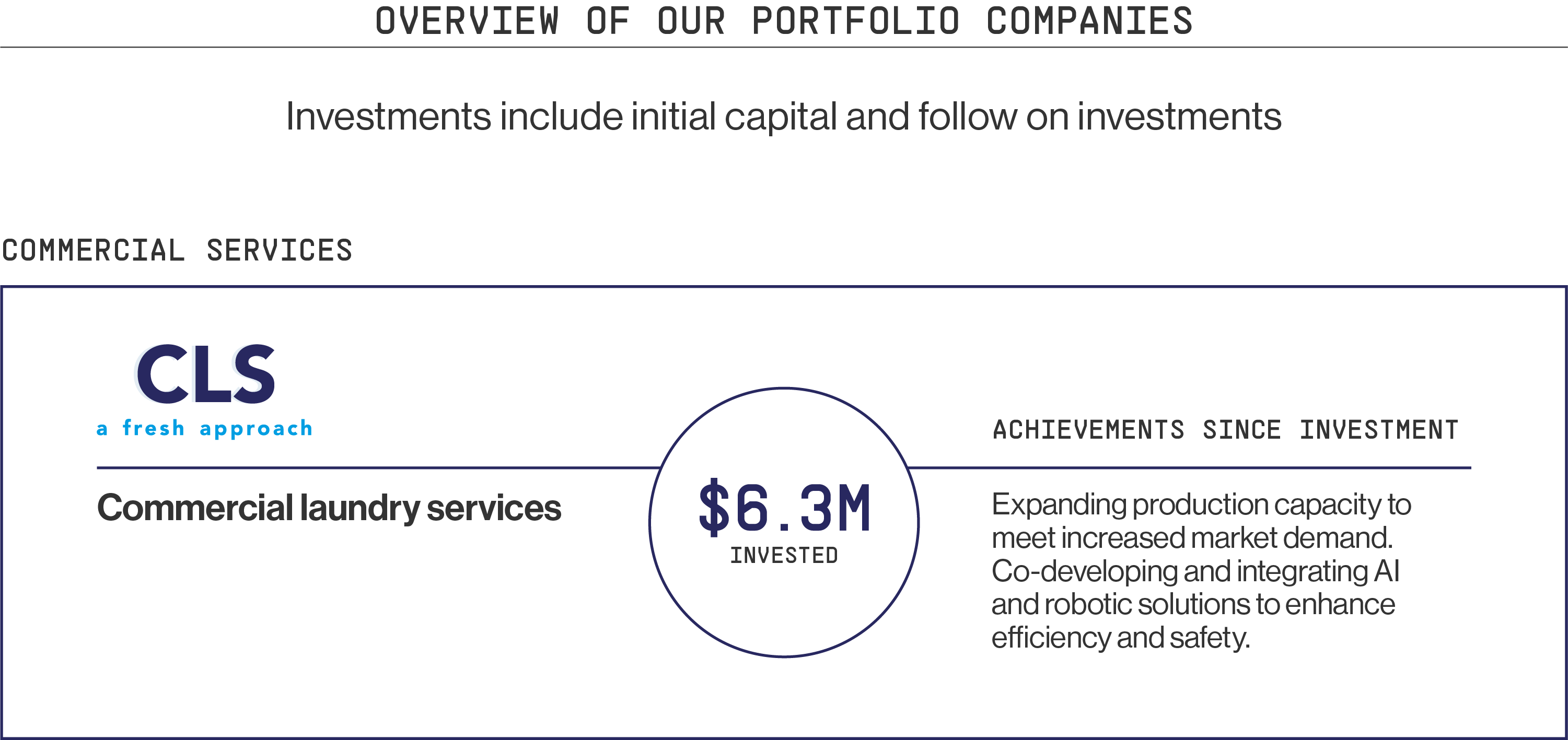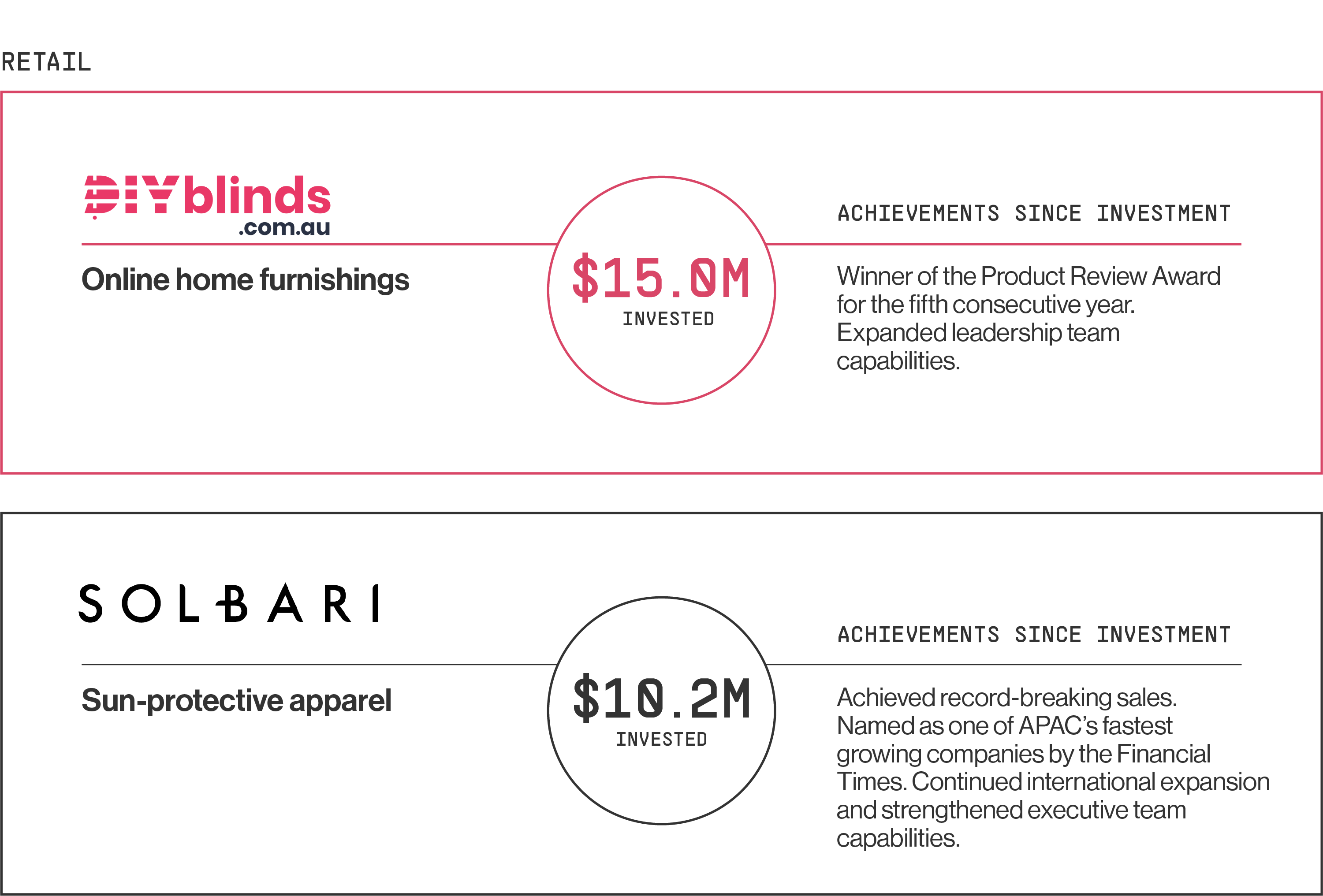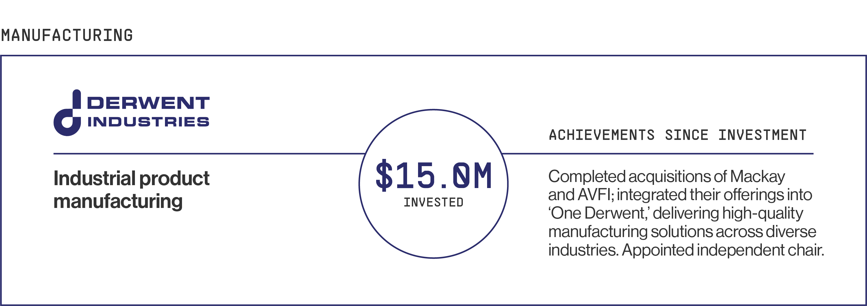 Our investment strategy has always been hands-on, offering more than just capital to our portfolio companies. Throughout the year, we worked closely with our portfolio, guiding their strategic direction, actively supporting M&A, and strengthening board governance. Our collaboration resulted in tangible leadership outcomes, such as the appointment of five new independent chairs and the expansion of executive teams. Our active investment approach contributed to significant commercial milestones across our portfolio, including successful entry into new overseas markets, and record-breaking sales results.